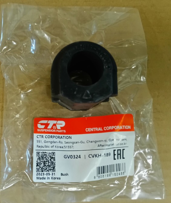 -1_0814 - 400 - Втулка переднего стабилизатора CTR CVKH-189 (Новая) Артикул (OEM): CVKH-189 (соответствует оригиналу 54813-2Y000 / 54183-2Y000) Производитель: CTR (Южная Корея) — ведущий поставщик на конвейеры корейских автопроизводителей. Состояние: Новое, в оригинальной упаковке. Место установки: Передний мост (левая/правая сторона). Внутренний диаметр: 23.7 мм. Применяемость: Высококачественная деталь подвески для популярных кроссоверов: Hyundai ix35 (LM, EL, ELH) — 2009–2017 г.в. Kia Sportage (SL / 3 поколение) — 2010–2015 г.в. Hyundai Tucson Также может применяться на Lifan X50. Преимущества втулок CTR: Эффективное гашение вибраций: Специальный состав резины поглощает шумы и удары, обеспечивая тишину в салоне и плавность хода. Износостойкость: Материал устойчив к воздействию дорожных реагентов, перепадам температур и трению, что увеличивает интервал между заменами. Идеальная геометрия: Точное соответствие размерам стабилизатора гарантирует плотный обхват и отсутствие люфтов, что напрямую влияет на устойчивость автомобиля в поворотах. Дополнительная информация: Рекомендуется менять парой для равномерной работы стабилизатора. Возможна отправка транспортными компаниями (СДЭК, Энергия, Деловые Линии и др.). Пишите в сообщения или звоните, отвечу на все вопросы!
