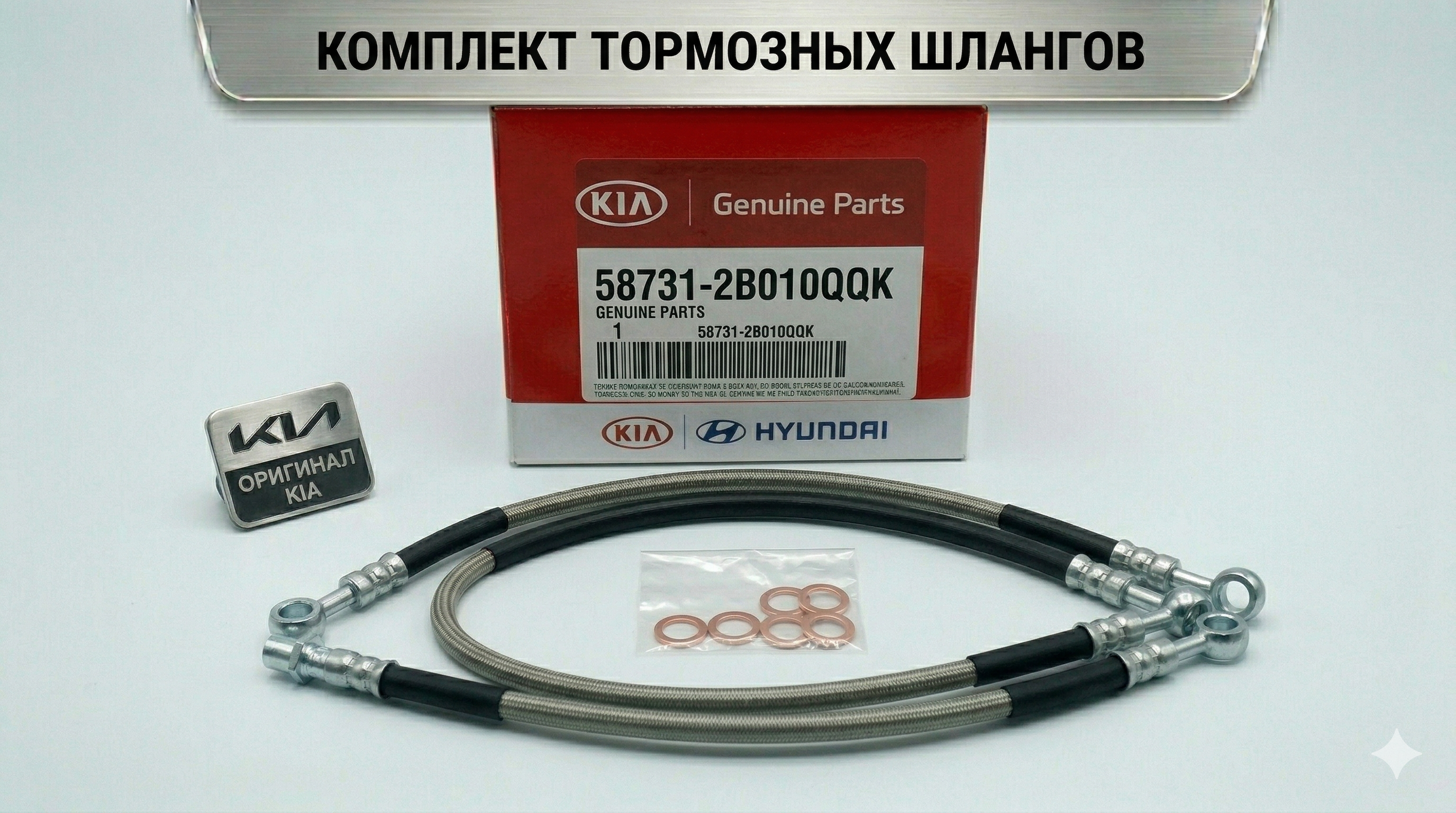 -1_0819 - 3000 - Комплект тормозных шлангов (4 шт.) KIA 58731-2B010QQK (Оригинал) Артикул (OEM): 58731-2B010QQK Производитель: KIA (Оригинал) Состояние: Новое, в оригинальной упаковке. Место установки: Передний мост + Задний мост. Детальная применимость: Разработан для полноразмерных кроссоверов концерна. Рекомендуется менять все шланги одновременно для равномерной работы тормозной системы: Kia Sorento (кузов XM): 2009, 2010, 2011, 2012 г.в. Hyundai Santa Fe (кузов CM): 2006, 2007, 2008, 2009, 2010, 2011, 2012 г.в. Преимущества оригинала KIA: Максимальная безопасность: Вы получаете уверенность в работе всей тормозной системы автомобиля. Долговечность: В отличие от китайских аналогов, оригинальные шланги KIA не трескаются, не дубеют на морозе и не «раздуваются» под давлением. Полная совместимость: Все шланги и крепеж идеально подходят, не требуя доработок. Дополнительная информация: 100% Оригинал KIA. Доставка: Оперативно отправлю через СДЭК, Энергию или Деловые Линии. Пишите, отвечу на все вопросы по совместимости!